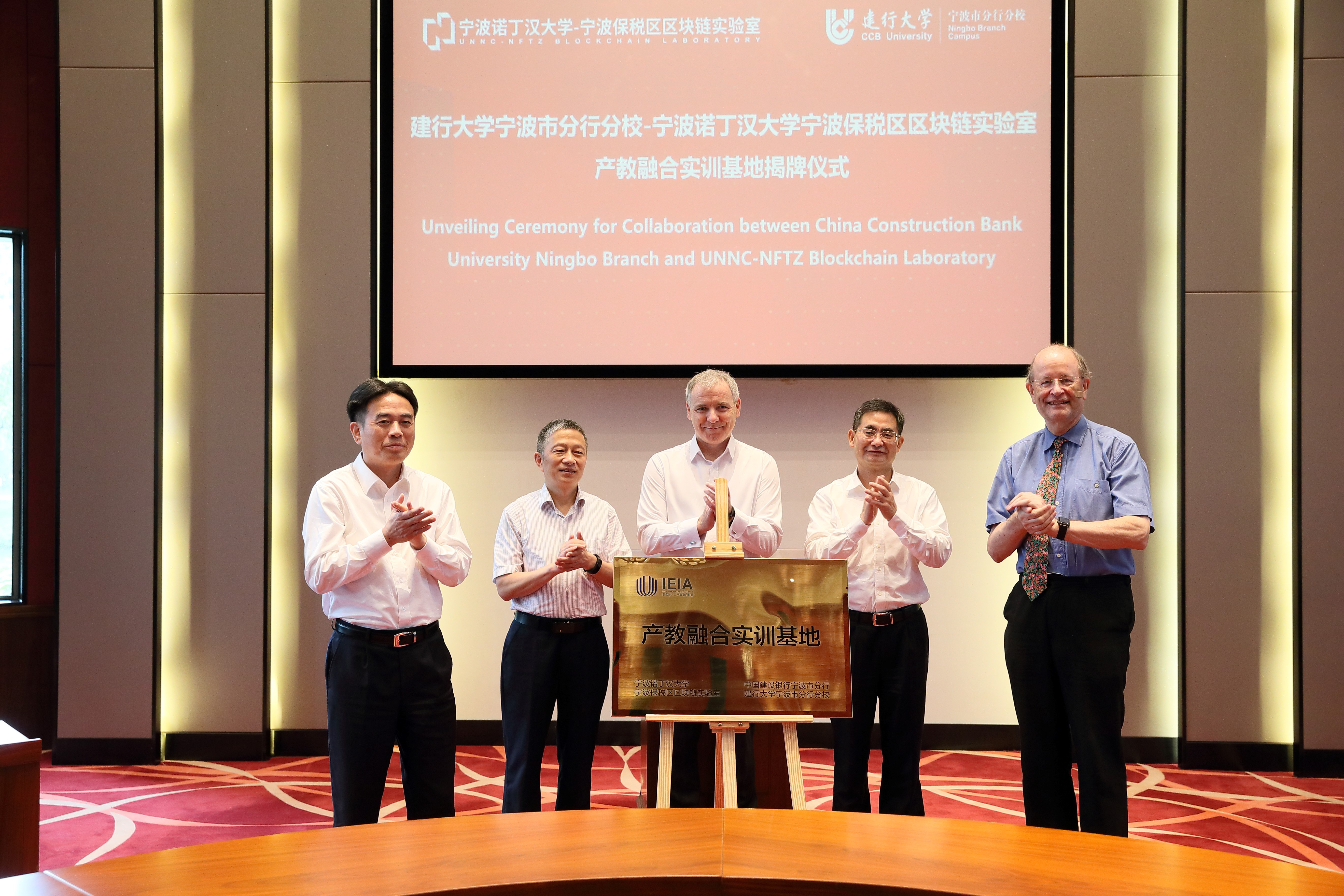 The unveiling ceremony of Industry, Teaching, and Research Base (the Base) collaborated by China Construction Bank University Ningbo Branch Campus and UNNC-NFTZ Blockchain Laboratory was successfully held